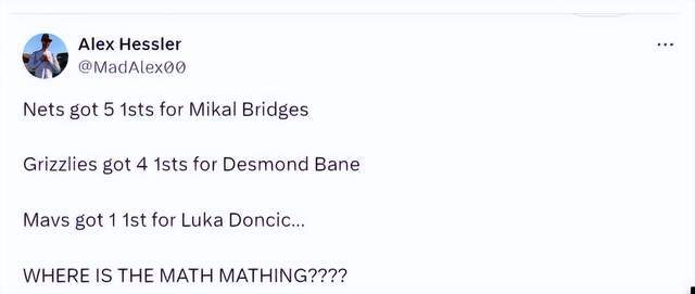 “篮网用布里吉斯换来5个首轮,灰熊用贝恩换来4个首轮,独行侠用东契奇换来1个首轮,数学在哪儿?”